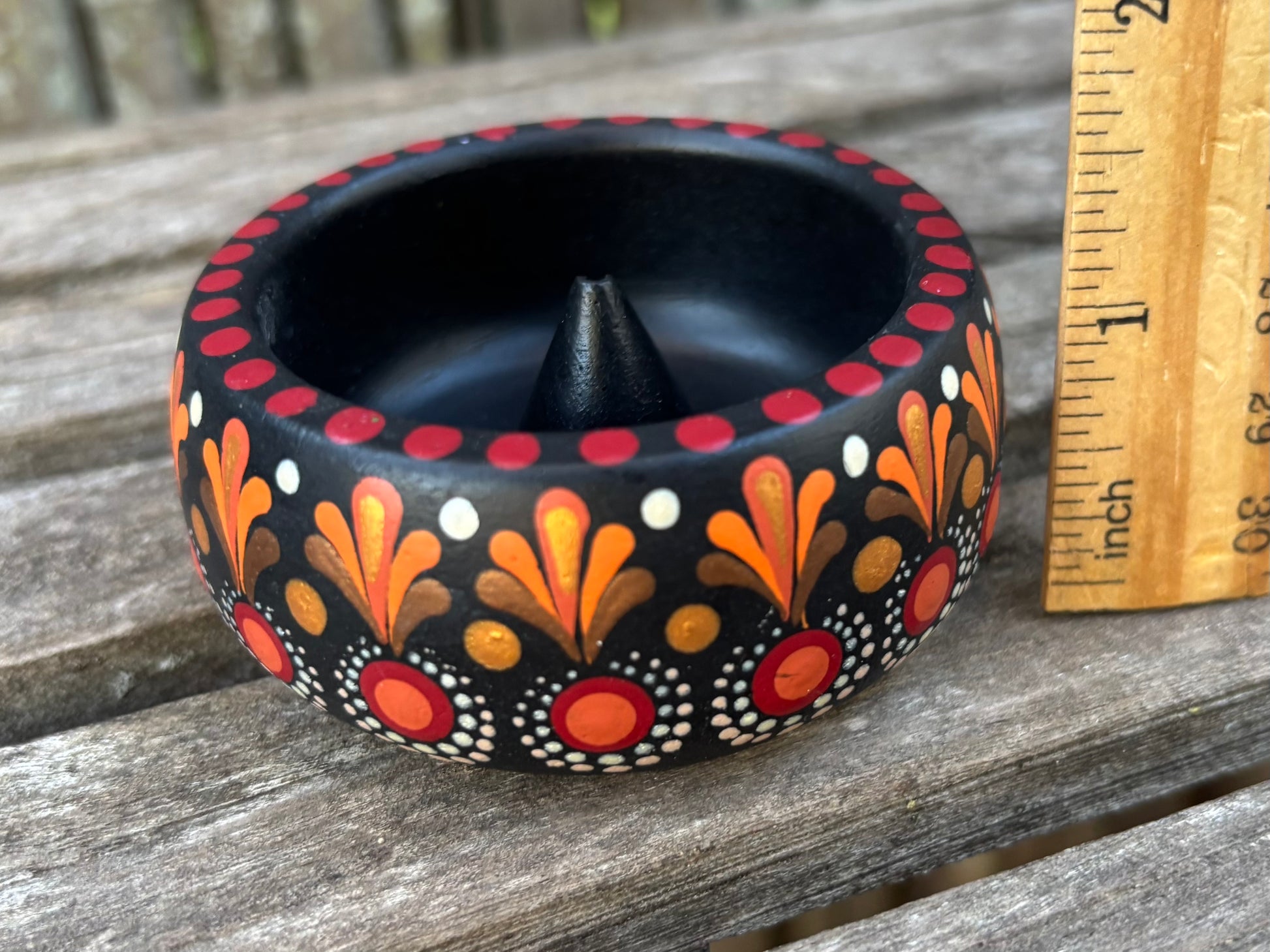 Gorgeous hand-painted mandala incense holder burner. Poured concrete and sealed with marine varnish. This is a beautiful, unique piece.