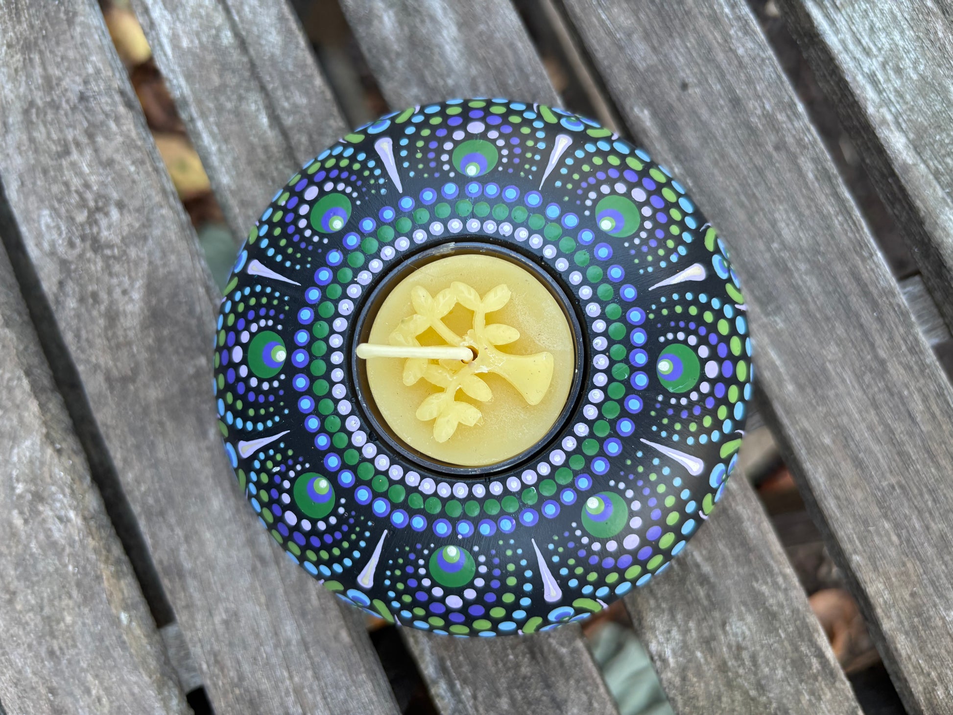 Concrete Mandala Tealight Tea Light Holder Purple Green and Blue