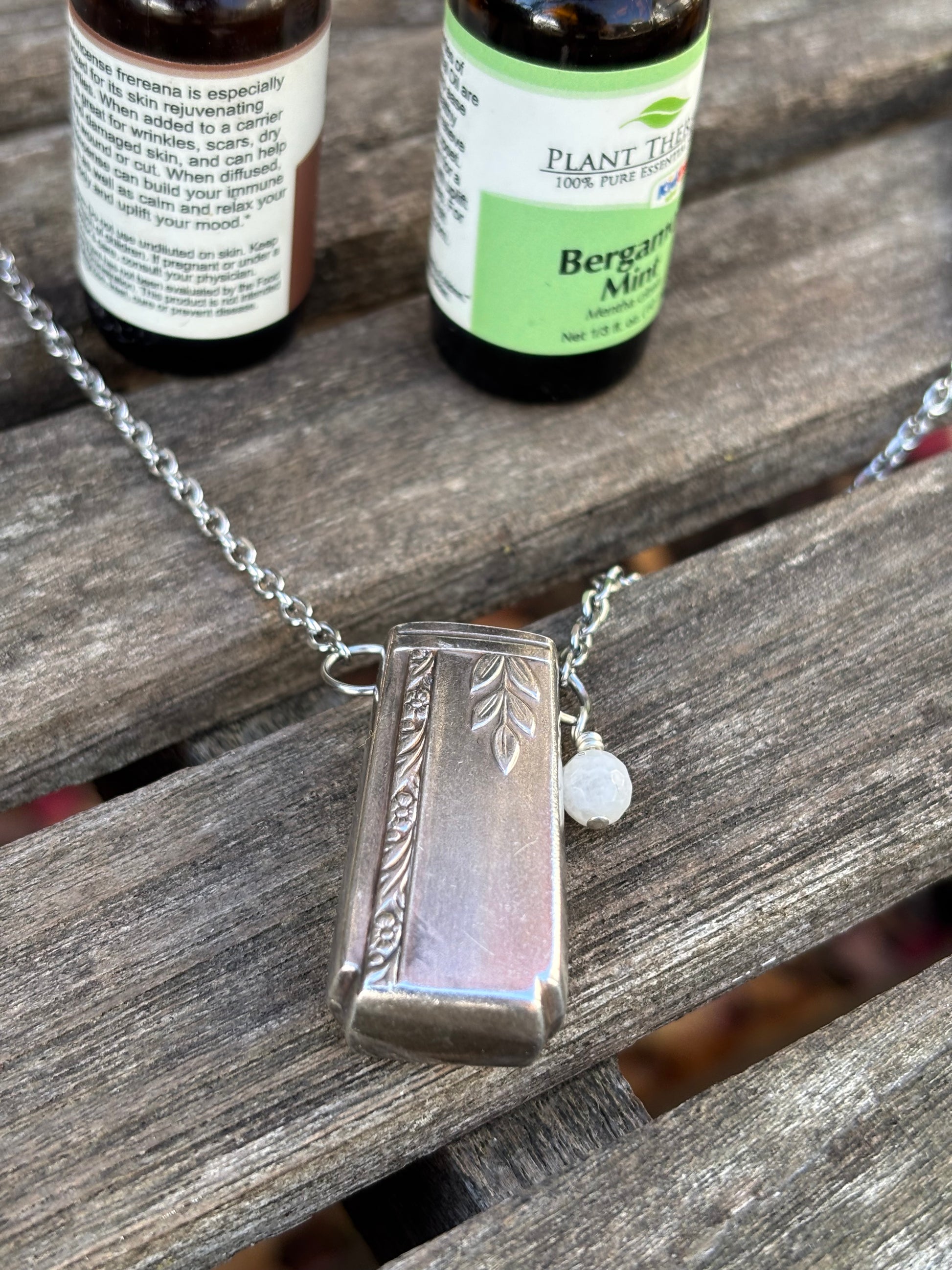 Up-Cycled Vintage Silverware Essential Oil Diffuser Pendant with Moonstone