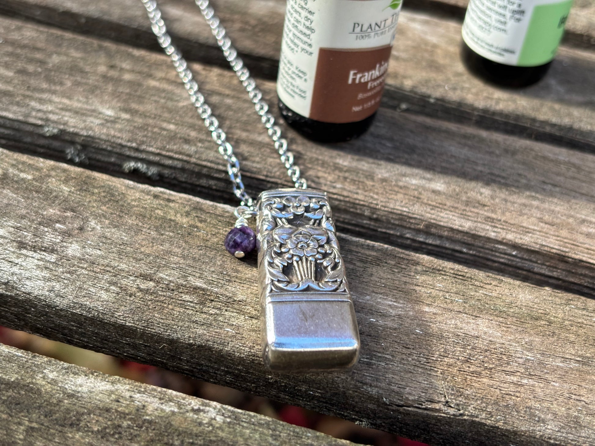 Up-Cycled Vintage Silverware Essential Oil Diffuser Pendant with Amethyst Crystal
