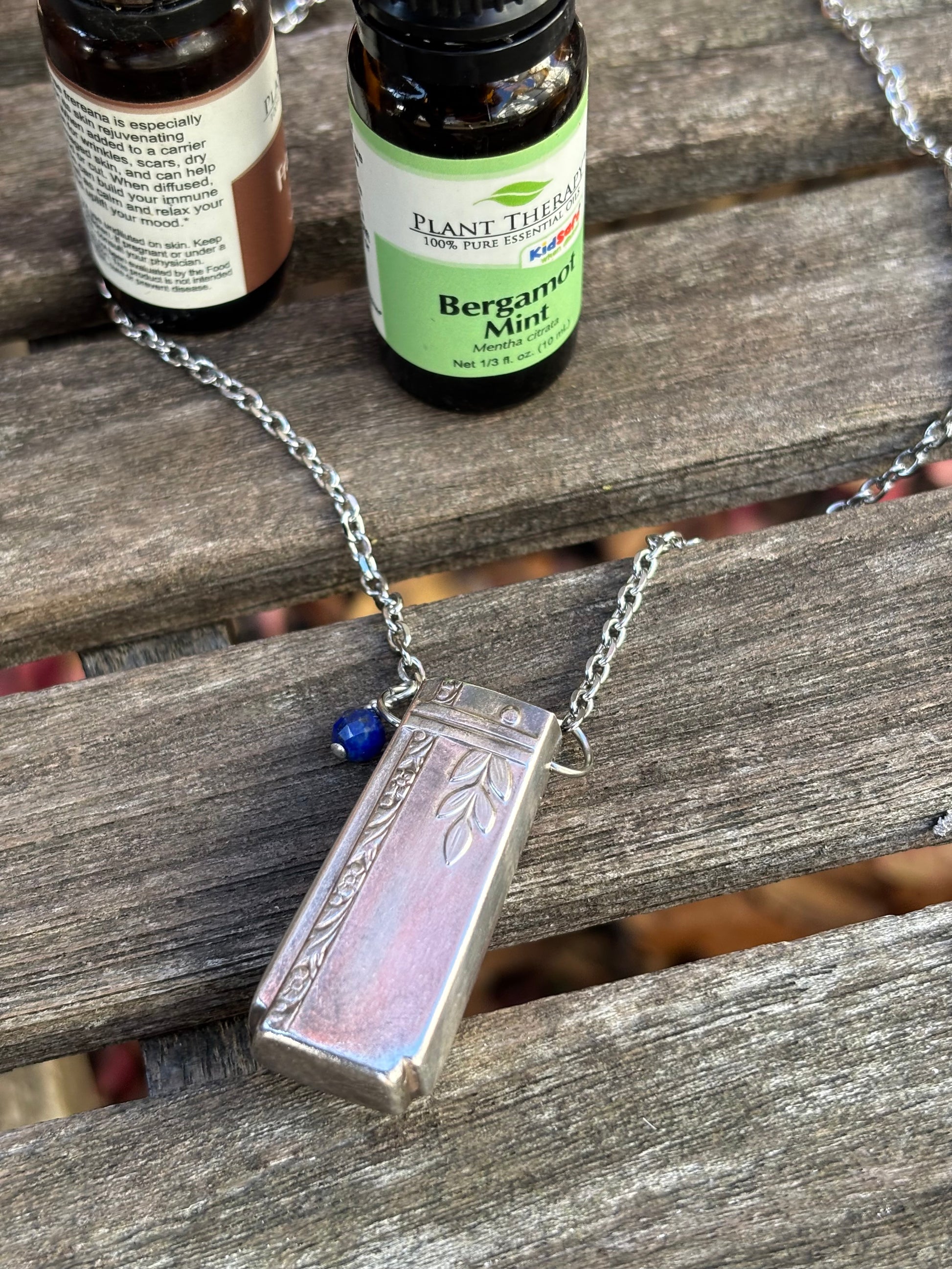 Up-Cycled Vintage Silverware Essential Oil Diffuser Pendant with Lapis