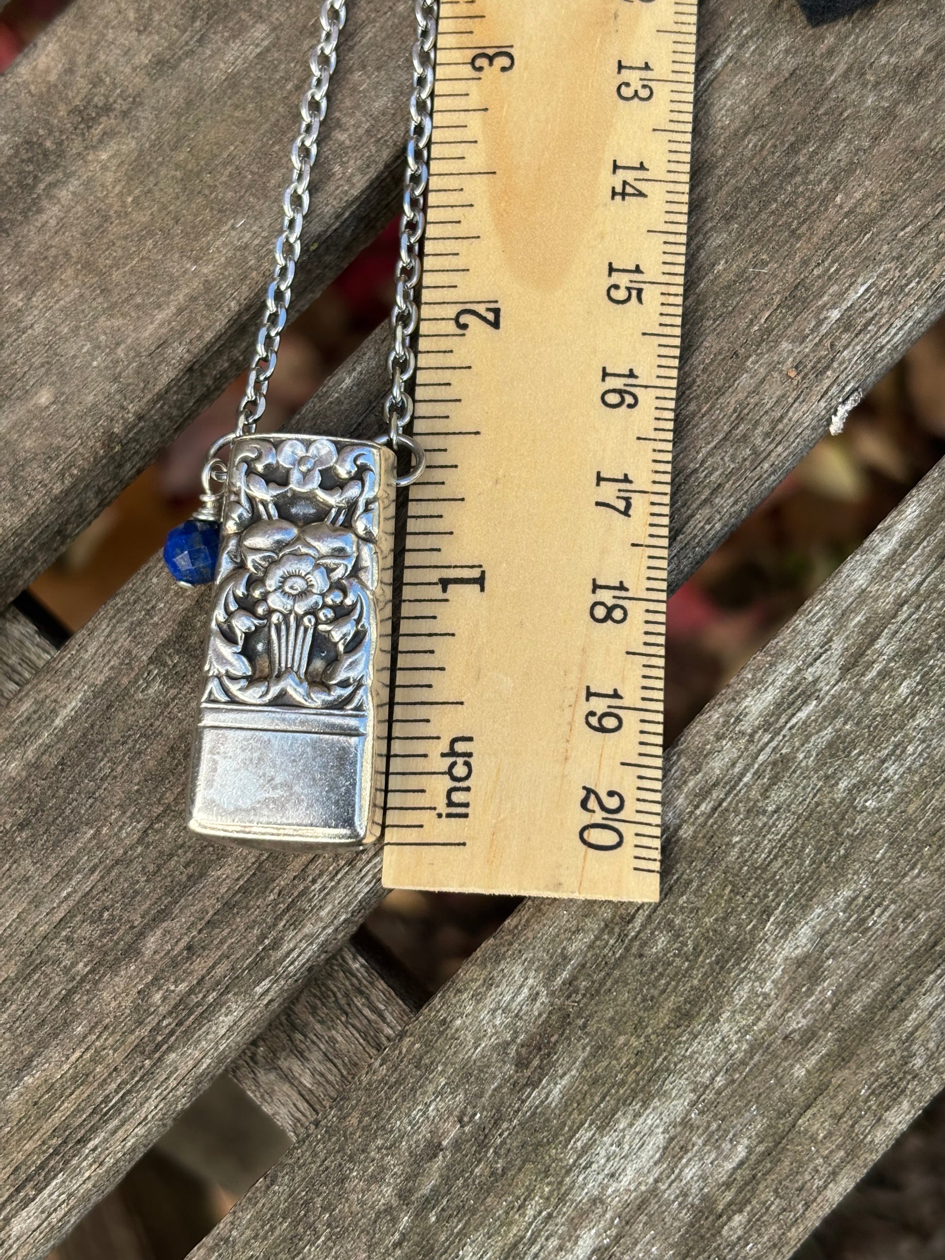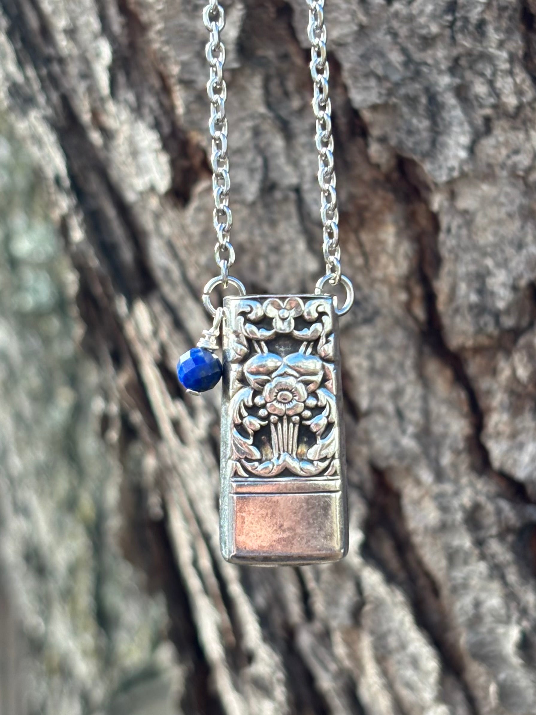 Up-Cycled Vintage Silverware Essential Oil Diffuser Pendant with Lapis Crystal