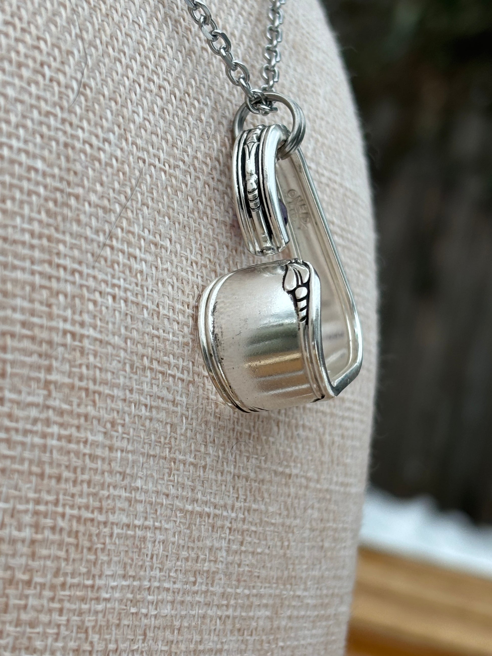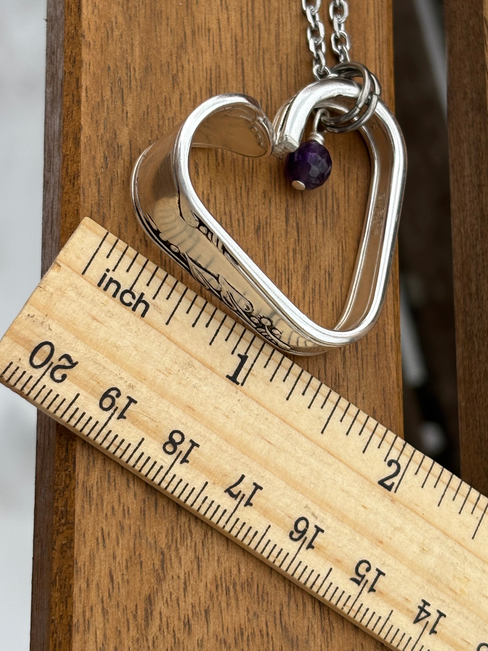 This unique open-heart pendant was created from the handle of a vintage silver-plated fork/spoon.